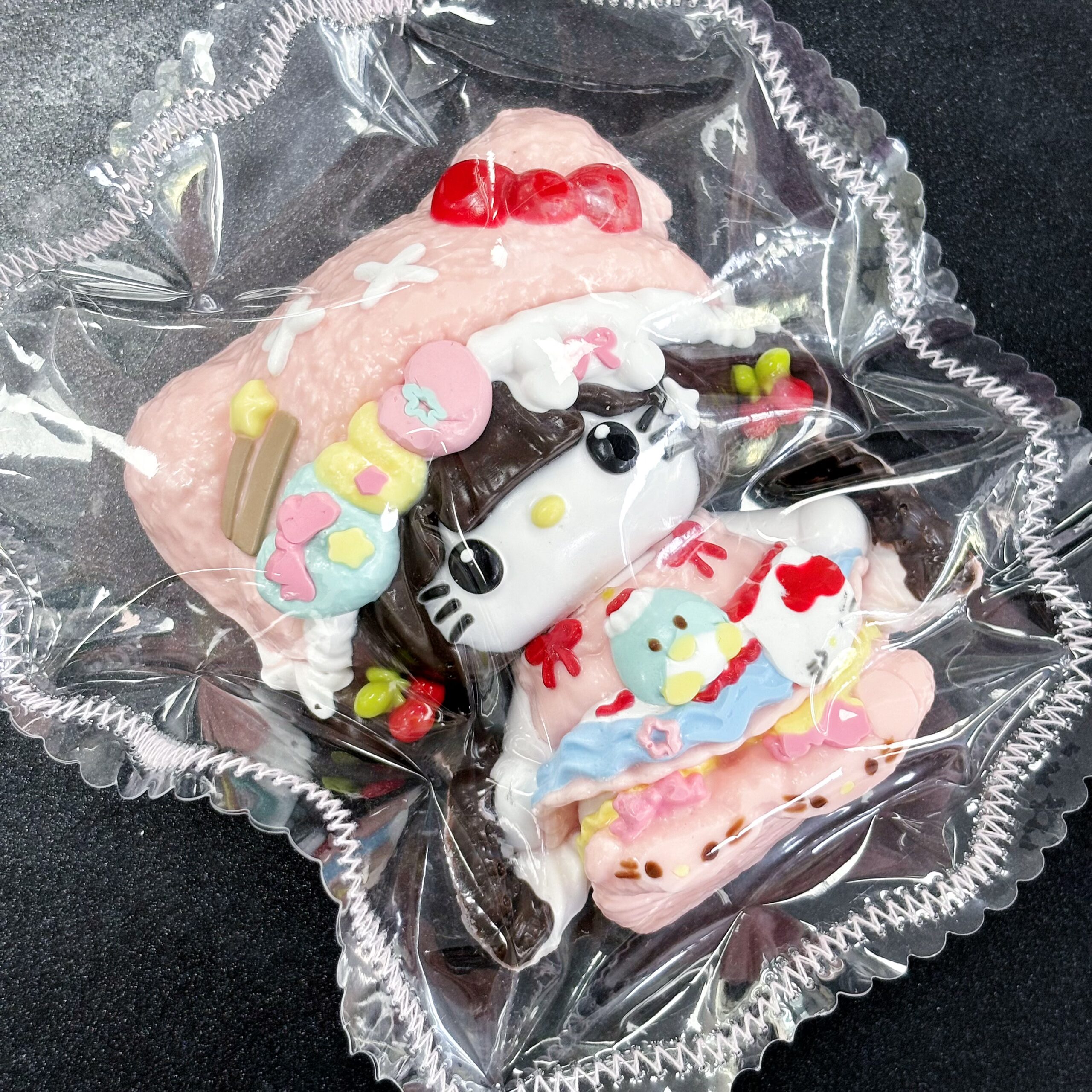 人気キャラクター「キティちゃん」を、ストロベリーチョコレートのスイーツデザインに仕上げました。