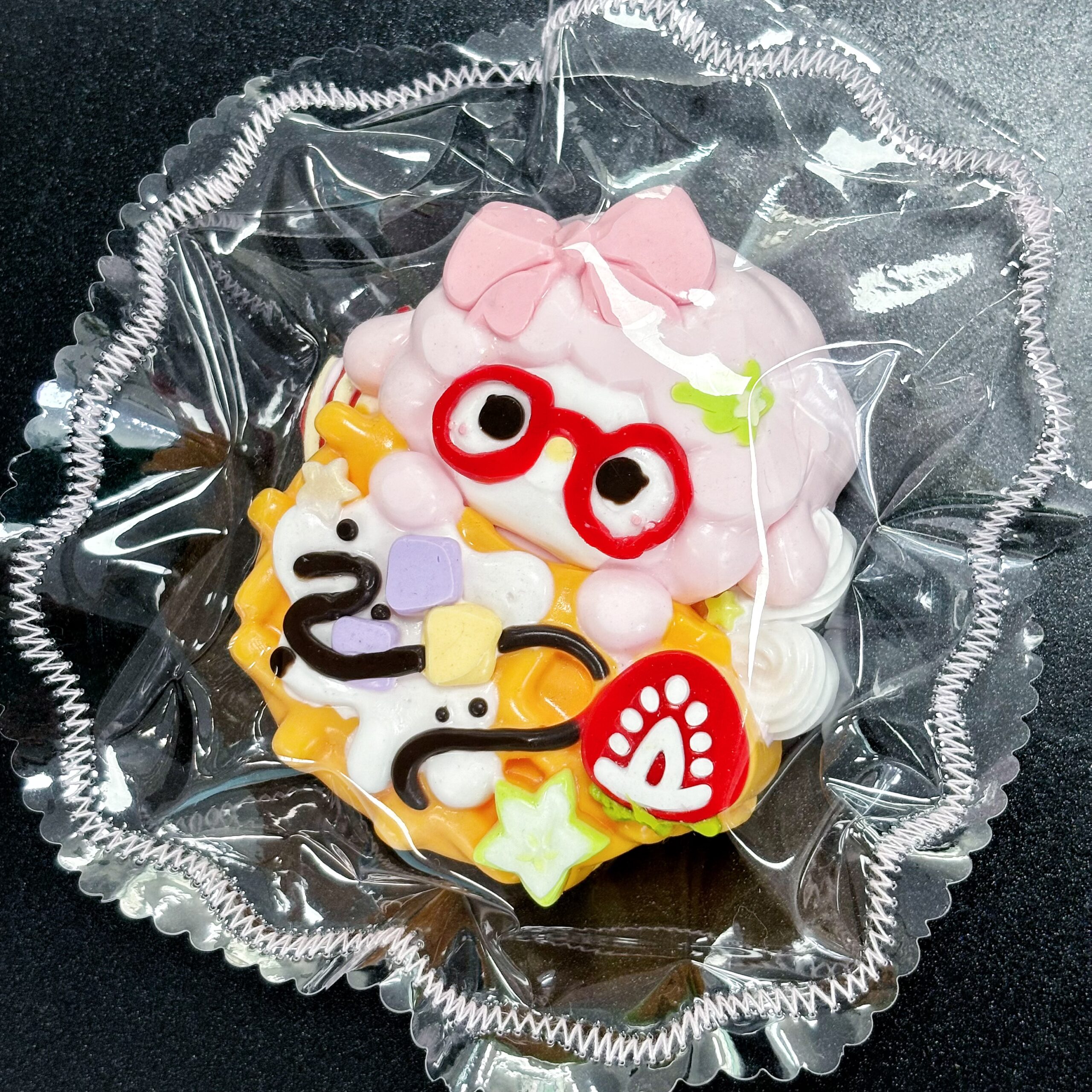 ふんわりとしたピンクのヘアにレッドグラスをかけた、ストロベリーワッフルのようなスクイシーです。